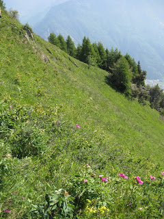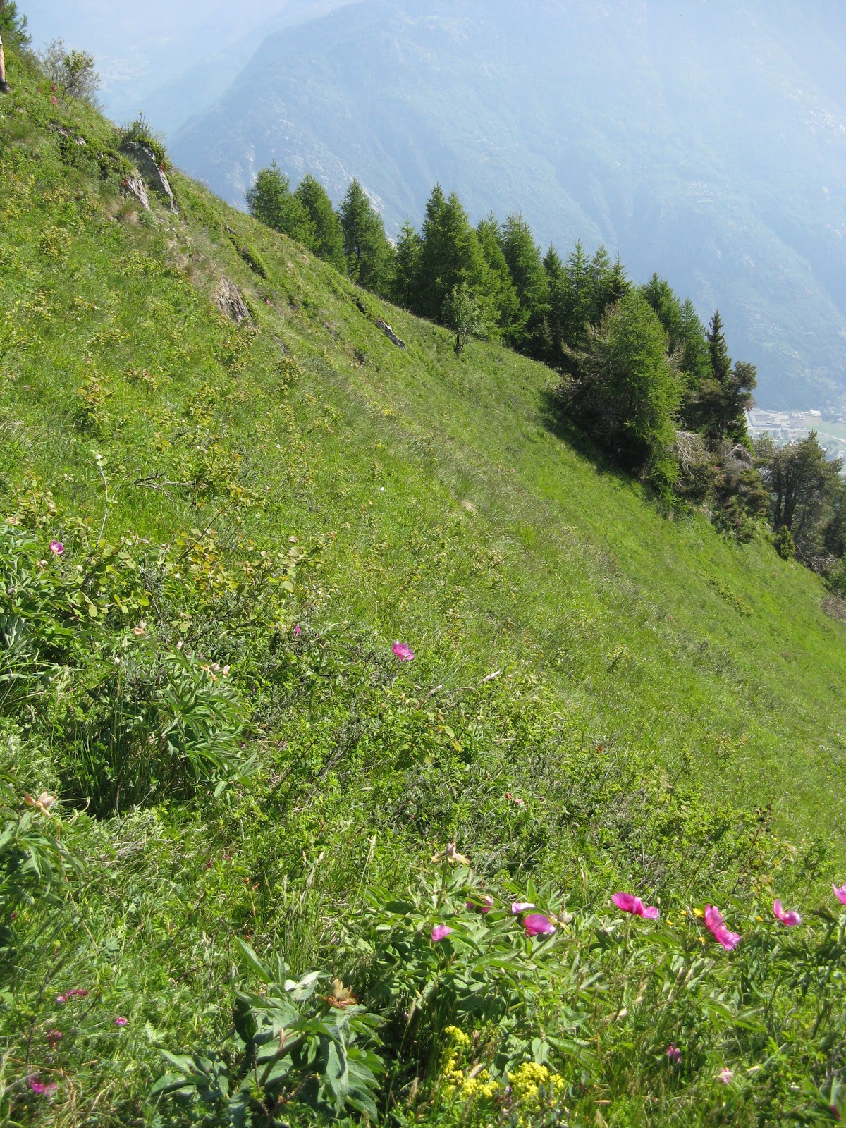 si giunge su un pendio erboso (proprio prima di scendere appunto all’alpeggio La